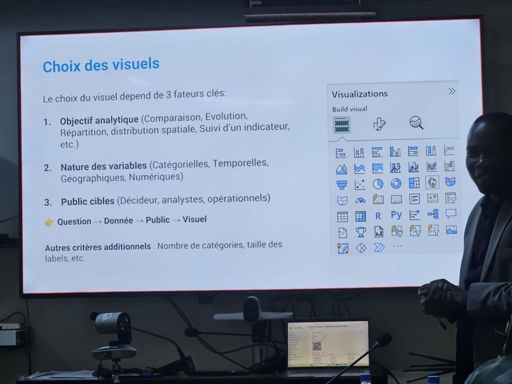 Au cours des sessions, les participants ont acquis des compétences pratiques en collecte, analyse et visualisation des données, leur permettant de transformer des informations complexes en tableaux de bord interactifs et en supports visuels accessibles. Ces outils facilitent une meilleure compréhension des tendances, des performances et des impacts des interventions.